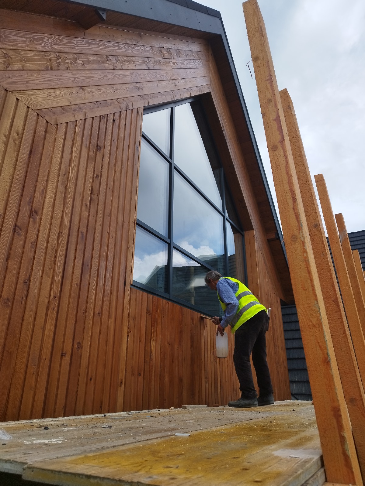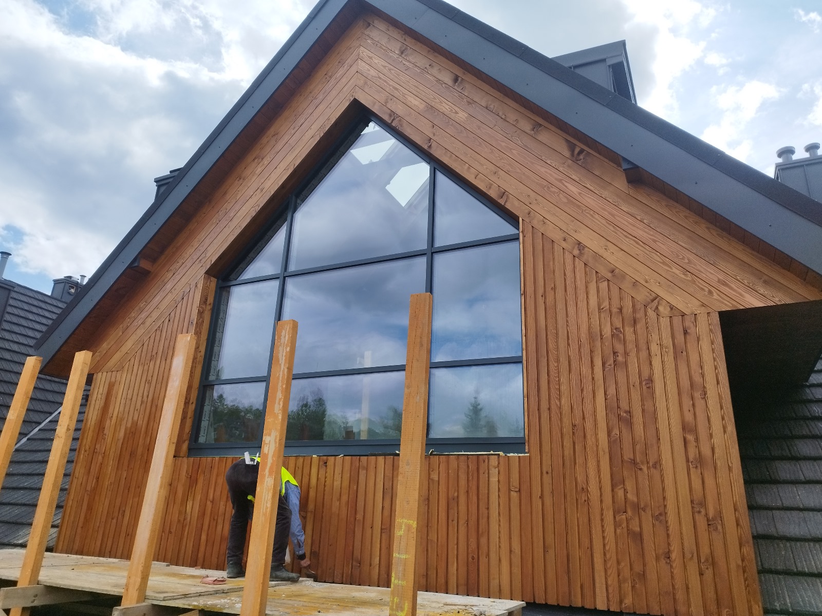- Materiały: Tynk silikonowy, naturalne deski elewacyjne, profesjonalny system ocieplenia.