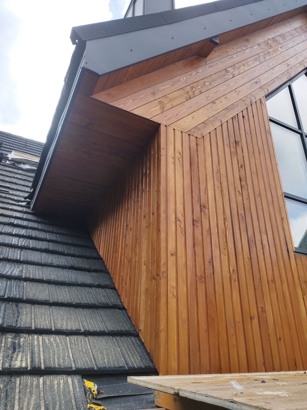 - Dobór Technologii Zdecydowaliśmy się na system oparty na tynku silikonowym – materiale hydrofobowym, paroprzepuszczalnym i odpornym na zabrudzenia. To najlepszy wybór w miejsca o dużej wilgotności. Połączyliśmy go z impregnowanymi ciśnieniowo deskami elewacyjnymi, które zapewniają naturalny wygląd i wieloletnią trwałość.